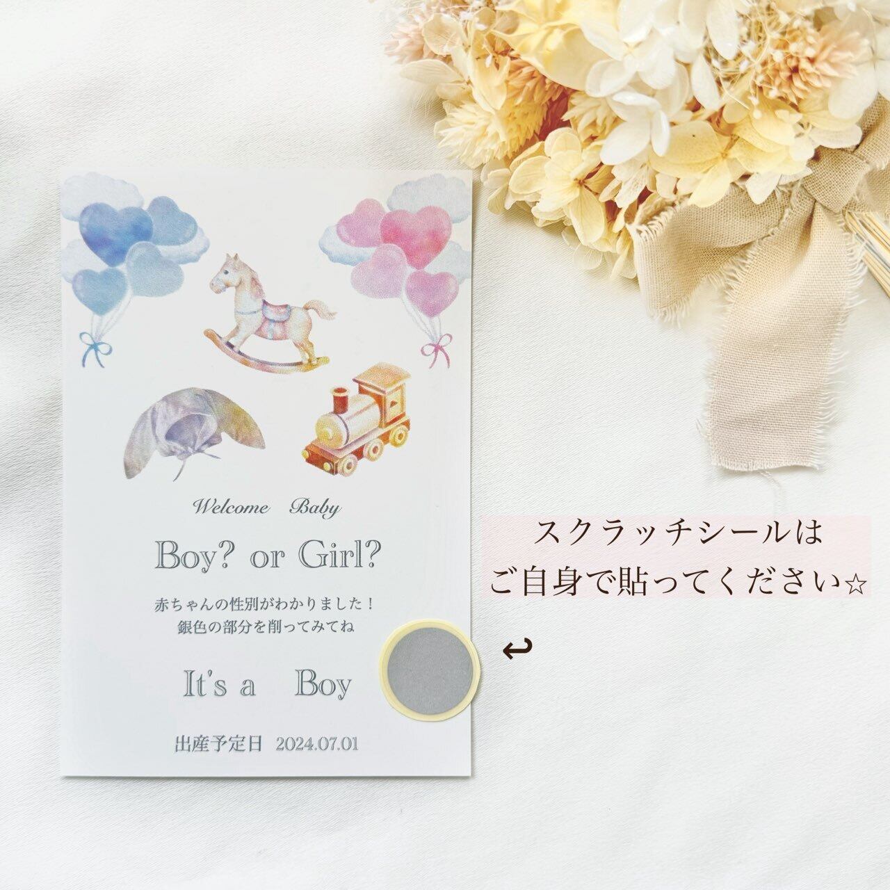 ◼︎カードの性別確認ができるようスクラッチシールを同梱いたしますので、ご自身で貼ってください。